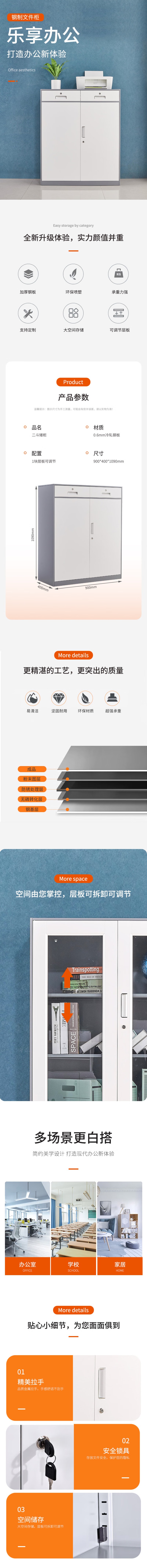 企诺 QNGa18FO-06LPA 文件档案柜 加厚 二斗矮柜 900*400*1090mm(单位:个) 0.6mm冷轧钢板