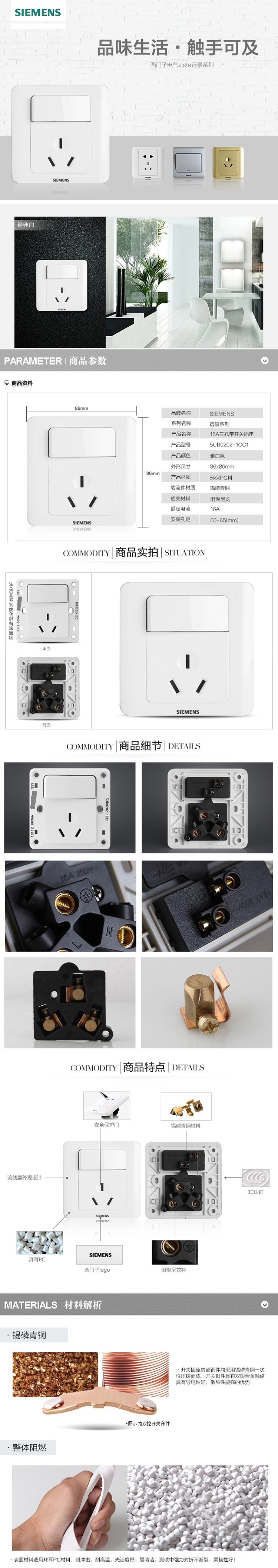 西门子 5UB02021CC1 开关插座面板 16A三孔(单位:个) 86型暗装 远景雅白色