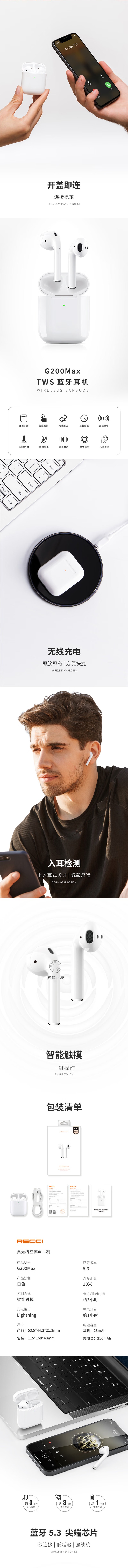 锐思(Recci) G200 Max 真无线蓝牙耳机 蓝牙V5.3(单位:副) 白色