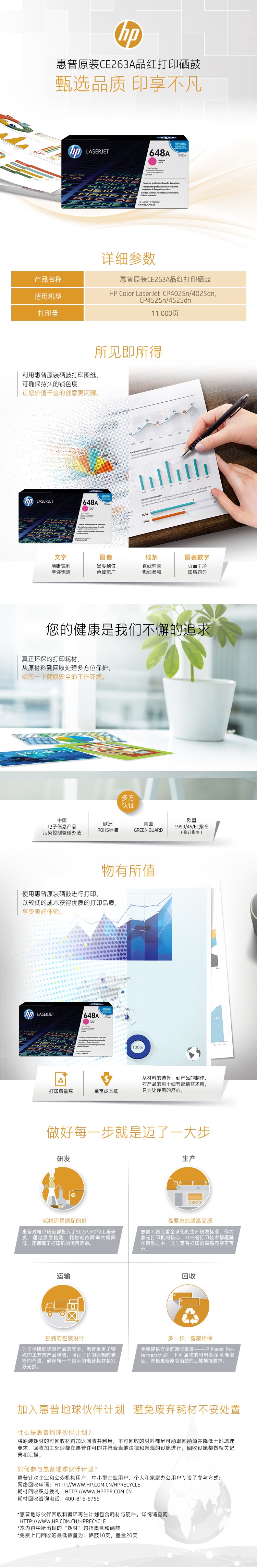 惠普(HP) CE263A 648A 原装硒鼓 11000页 (单位:支) 适用LaserJet CP425/CP4525 品红色