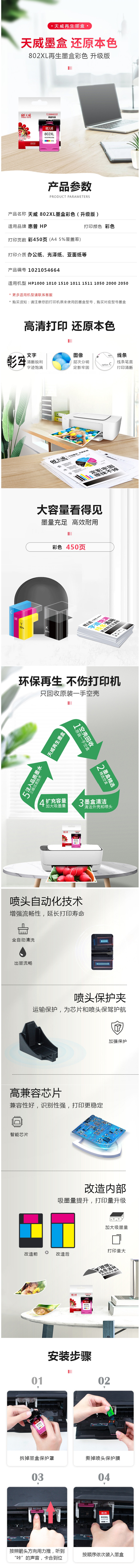 天威(PrintRite) 802XL 大容量墨盒 450页(单位:盒) 适用于惠普DJ1050 1010系列 彩色