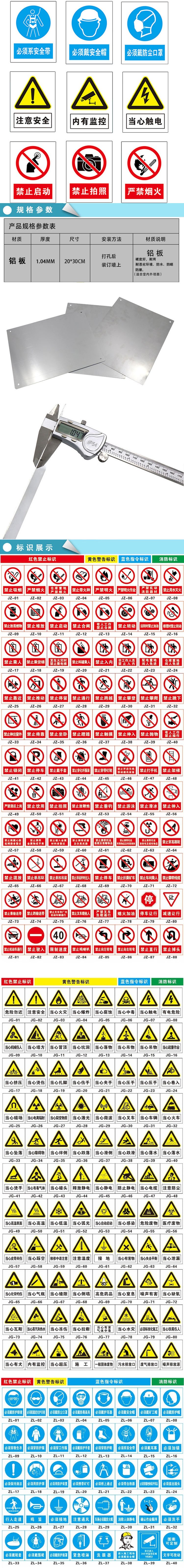 商品名称 铝板墙贴警示牌(注意安全)