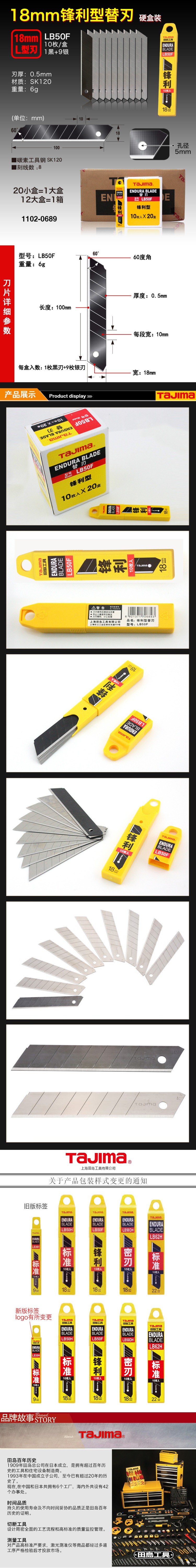 田岛(TaJIma) 1102-0689 LB50F 美工刀片 18MM 10片/盒(单位:盒)