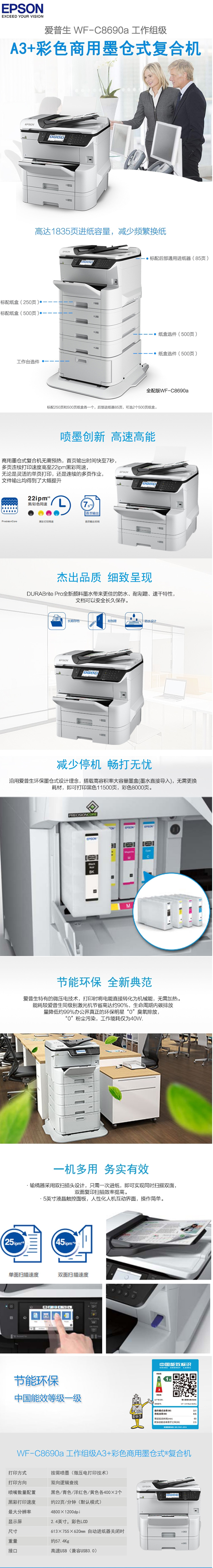 爱普生(Epson) WF-C8690a A3+工作组级彩色墨仓式多功能一体机(单位:台) 白色