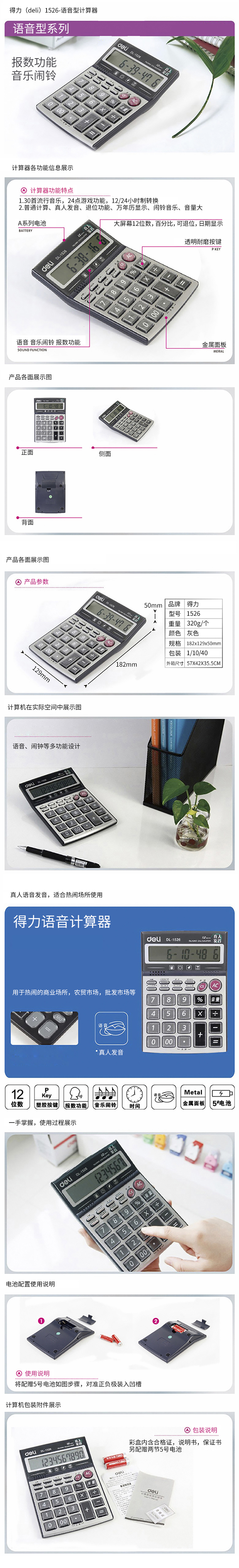 得力(deli) 1526 计算器 语音型(单位:台) 灰色